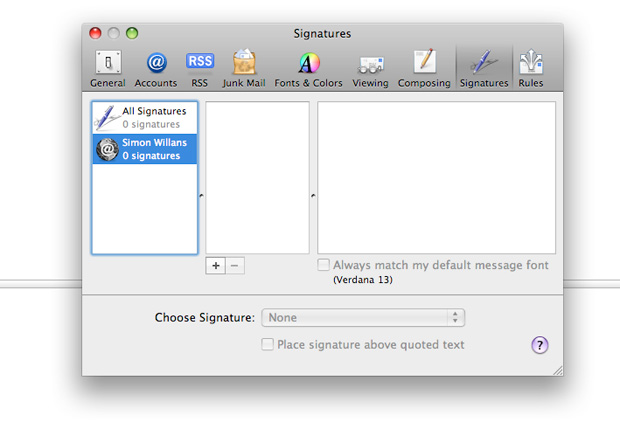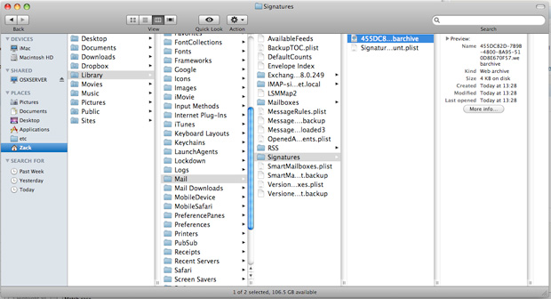 8. In the window that pops up go to your home folder (your username usually) > Library > Mail > Signatures.